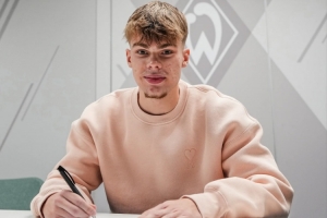 24直播网12月12日讯 不莱梅俱乐部官方宣布, 18岁中卫米克·施密特根已与俱乐部签署首份职业合同。