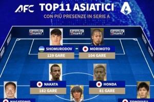 意甲出场最多的亚洲球员11人阵: