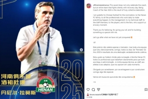 24直播网12月13日讯 在获得2025赛季中超最佳教练殊荣后,河南队主帅拉莫斯更新社媒,感谢了团队的努力。