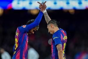 24直播网12月14日讯 西甲第16轮,巴萨2-0奥萨苏纳,本场拉菲尼亚梅开二度包揽球队的全部进球,还打入一粒精彩远射。
