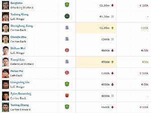 24直播网12月17日讯 今日德转更新中超球员身价,国足球员身价中,塞尔吉尼奥与王钰栋150万欧并列第一,武磊50万欧已跌出前十,排名第13。