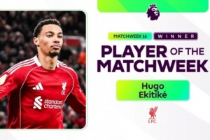 24直播网12月17日讯 英超官方消息,利物浦前锋埃基蒂克被评为联赛第16轮最佳球员。