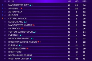 24直播网12月17日讯 Squawka统计去除VAR判罚错误后的英超积分榜情况,曼城、阿森纳排名前二。