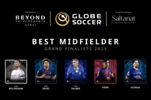 24直播网12月18日讯 环球足球奖公布了2025年度最佳中场最终5人候选名单,贝林厄姆、佩德里在列。