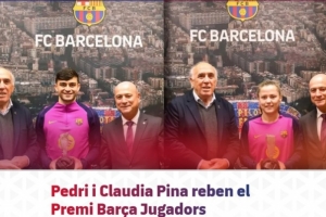24直播网12月18日讯 巴萨佩德里和克劳迪娅·皮娜获得了巴塞罗那球员奖,这是俱乐部球员协会每年颁发的奖项,旨在表彰球员在该赛季展现出的公平竞赛精神。协会主席胡安·曼努埃尔·阿森西和俱乐部董事何塞普·伊格纳西·马西亚在体育城举行的仪式上负责向球员颁奖。