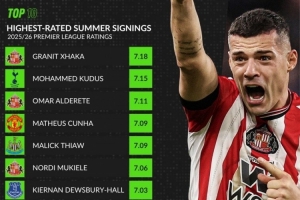 24直播网12月18日讯 whoscored统计了本赛季英超新援的场均评分情况,桑德兰队长扎卡居首。