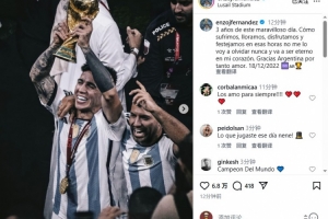 恩佐写道:“这个美妙的三周年纪念日。在那几个小时里,我们如何煎熬、哭泣、享受并庆祝,我将永生难忘,它将永远留在我心中。感谢阿根廷给予如此多的爱,2022年12月18日。”