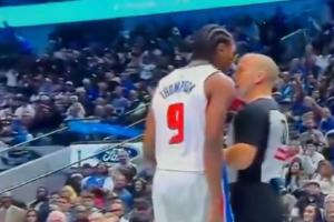 24直播网12月19日讯 NBA常规赛,活塞加时114-116不敌独行侠。奥萨尔·汤普森本场比赛被驱逐。