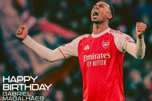 24直播网12月19日讯 今天是阿森纳后卫加布里埃尔28岁生日,枪手官方晒图,为其送上祝福。