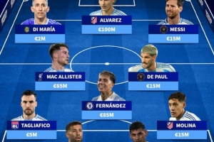 前锋:迪马利亚(罗萨里奥中央,200万)、胡利安·阿尔瓦雷斯(马德里竞技,1亿)、梅西(迈阿密国际,1500万)