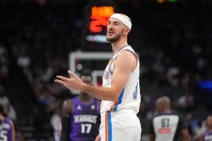 本场比赛,雷霆球员卡鲁索手感不佳,出场22分钟7投2中,三分6中1、罚球2中2拿到7分12篮板1助攻2盖帽,正负值-7。