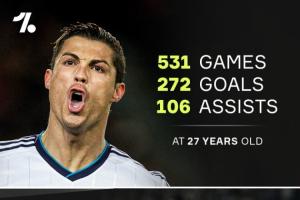 24直播网12月20日讯 姆巴佩年满27岁之际,知名媒体OneFootball晒图,对比了姆巴佩和C罗27岁时的数据。