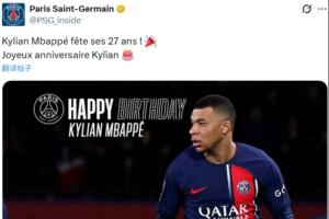 24直播网12月20日讯 今天是法国前锋姆巴佩27岁生日,他的老东家巴黎圣日耳曼在社媒为姆巴佩送上生日祝福。