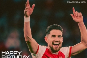 阿森纳官方社媒晒出若日尼奥的生日海报,配文:“生日快乐,若日尼奥!”
