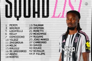 24直播网12月20日讯 尤文公布对阵罗马的大名单,米利克回归。