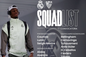 24直播网12月20日讯 北京时间12月21日凌晨4:00,2025-26赛季西甲联赛第17轮,皇马将在伯纳乌球场迎战塞维利亚。赛前,皇马官方公布球队本场大名单,巴尔韦德缺席,阿拉巴、门迪和卡马文加在列。