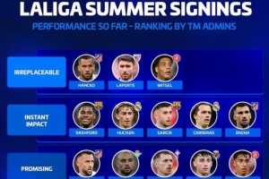 24直播网12月21日讯 《转会市场》列出了本赛季多位西甲新援,并根据表现为他们进行了评级,拉什福德、赫伊森等5将获评第2档,阿诺德获评第5档。