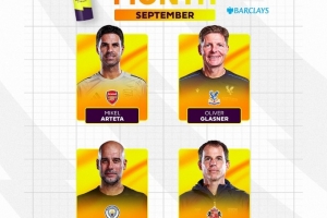 24直播网10月2日讯 英超公布9月份最佳教练候选名单,阿尔特塔、格拉斯纳、瓜迪奥拉和勒-布里斯入围。