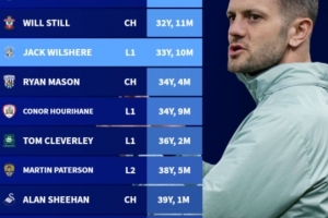 24直播网10月14日讯 德国转会市场盘点了英国前四级别联赛球队主教练年龄情况,卢顿新帅威尔希尔以33岁10个月成第三年轻主教练。
