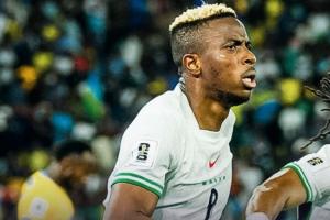 24直播网10月15日讯 世预赛非洲区小组赛C组,尼日利亚4-0贝宁,本场比赛奥斯梅恩戴帽,丘库埃泽助攻双响,但由于南非赢球,尼日利亚只能屈居C组第二。
