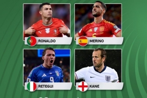 24直播网10月15日讯 欧足联公布了欧洲世预赛本轮最佳球员候选名单,C罗、梅里诺、雷特吉、凯恩在列。